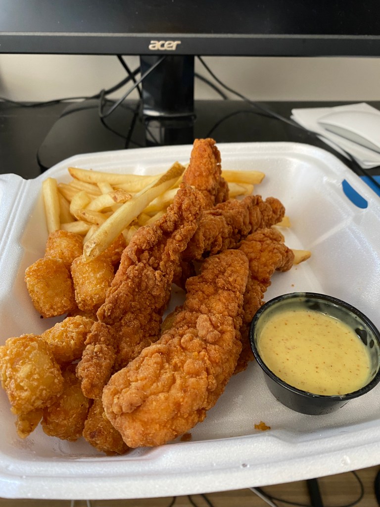 These looked like Dairy Queen chicken strips. A classic American strip from a classic American joint. The tendies, however, were on the dry side and didn’t have a standout flavor profile, but the crunch was decent. They were fried, dry and salty. Not much more to say there. They weren’t gross, just kinda boring.
