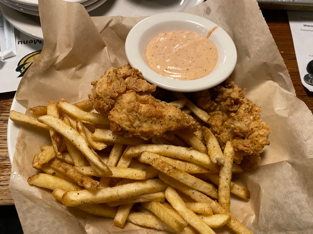 This was just an overall great chicken strip. The breading was crispy, the seasoning was satisfying from start to finish. These were comparable to my favorite chicken strips in Fargo, from SouthTown PourHouse. The breading was almost the same as PourHouse’s, these just had slightly less seasoning and the chicken was a hair, a HAIR on the dry side. Otherwise, zero complaints about the tenders.