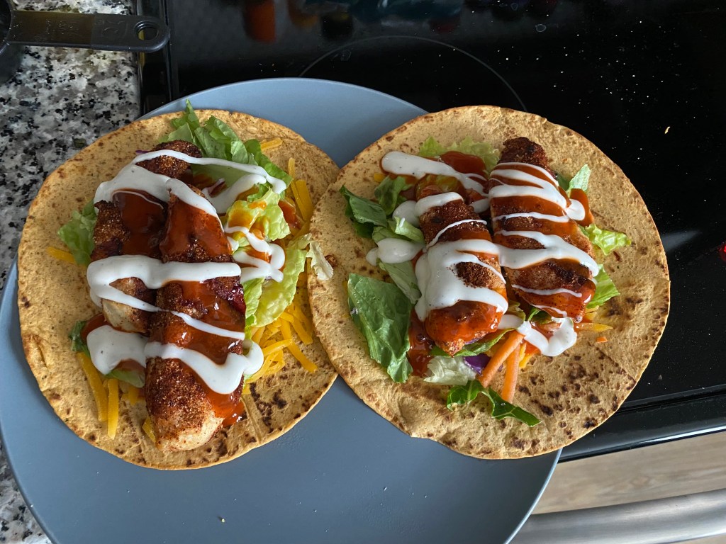 For my first meal of the day, I took down a couple delicious homemade buffalo chicken tacos. I simply seasoned and air-fried some fresh chicken tenders then threw them on low-carb tortillas with some buffalo sauce, light ranch dressing, lettuce, onions and low-fat cheddar cheese. I love keeping low-carb tortillas around for meals like this along with breakfast burritos and quesadillas. They still have good texture and flavor for between 60 and 80 calories a piece, depending on which flavor you opt for.