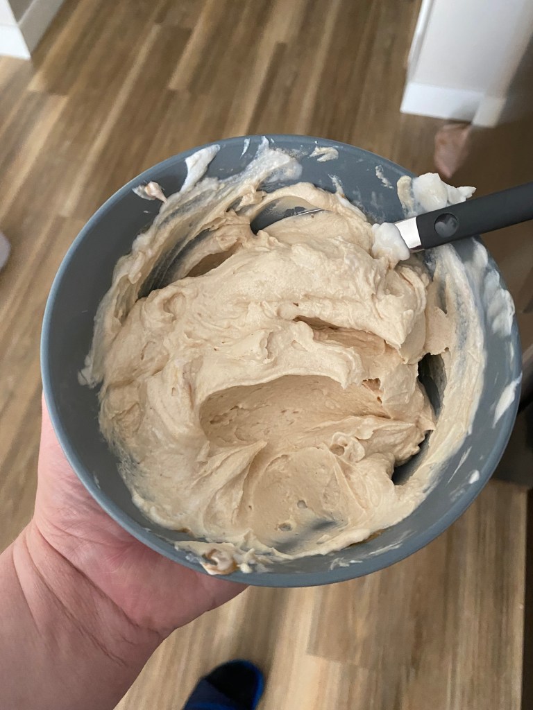 For my snacks, I had a chocolate peanut butter protein bar (200 calories, 20 protein, 17 carbs) and a delicious bowl of “ice cream,” which was nonfat Greek yogurt, a serving of peanut butter and a serving of sugar-free maple syrup (290 calories, 25 protein, 16 carbs).