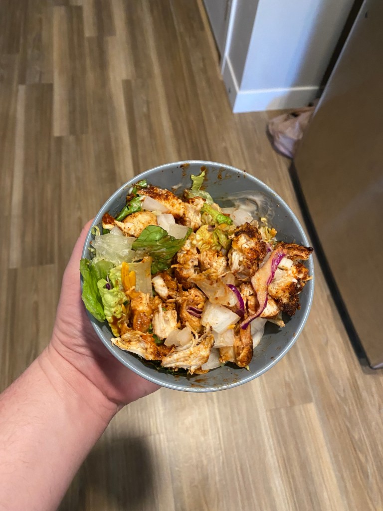 My goal is to still be full while eating less calories, so I’m focusing on good foods that are very protein-dense to help me stay full and satisfied. I’m shooting for about 1,500 calories a day to see how my body reacts and if that’s sustainable. After about two weeks, I’m feeling good about it and have been losing weight slightly faster.